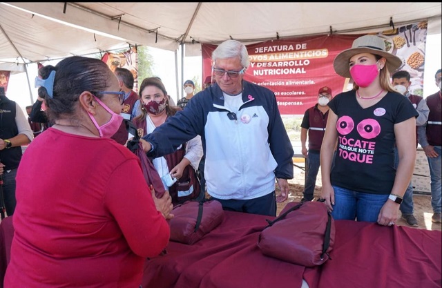 También, siguiendo los preceptos de la Cuarta Transformación, el Gobierno Estatal y Ayuntamiento han entregado a la fecha más de 600 mil canastas de alimentos a la población vulnerable del municipio, para que sacaran adelante a sus familias y que fueran menos intensos los estragos de la pandemia.