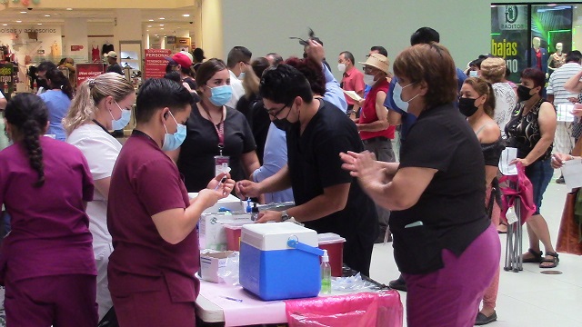 De las 15 mil 168 vacunas enviadas a Mexicali, este lunes se aplicaron 2 mil 040 dosis en la plaza Cachanilla y otras 1 mil 109 en la plaza Sendero, ambas ubicadas en la zona urbana.