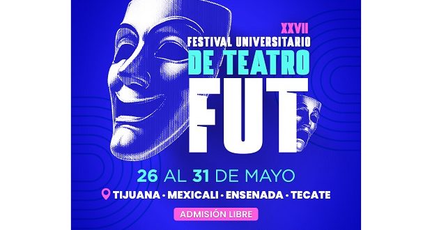 Tijuana, Baja California, sábado 24 de mayo de 2025.- La Universidad Autónoma de Baja California (UABC), a través de Cultura UABC, invita a la comunidad cimarrona y a a la población en general a asistir al XXVll Festival Universitario de Teatro (FUT), una fiesta de intercambio y difusión cultural a través del arte teatral. Esta celebración se llevará a cabo del 26 al 30 de mayo y contará con cuatro sedes: los campus de Tijuana, Ensenada y Mexicali; así como la Unidad Tecate.