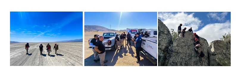 * A lo largo de seis días, el personal del Grupo de Respuesta Especializada Inmediata participó en entrenamientos intensivos en Tijuana, Laguna Salada y Cañón El Salto.