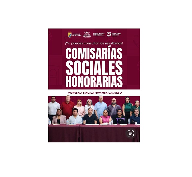 Mexicali, Baja California a 28 de mayo de 2025.- La Sindicatura Municipal de Mexicali informa con orgullo que ya han sido seleccionadas las 51 ciudadanas y ciudadanos que formarán parte de las Comisarías Sociales Honorarias, un mecanismo de participación ciudadana que busca fortalecer la vigilancia de la gestión pública municipal.