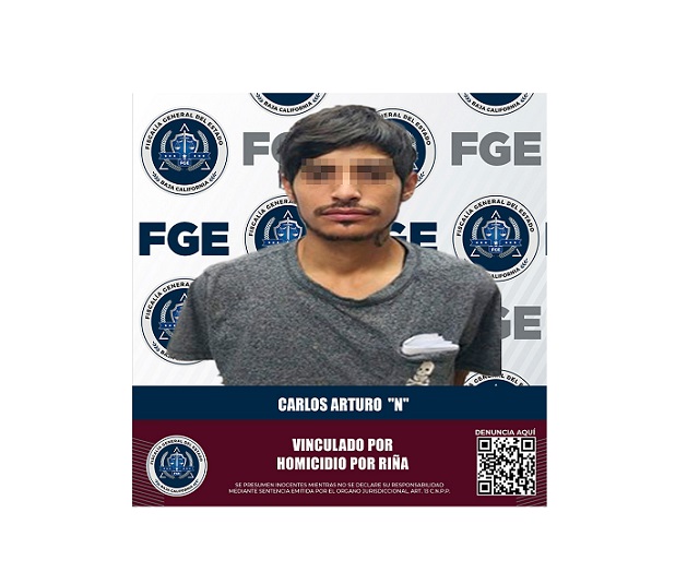 MEXICALI, BAJA CALIFORNIA, 31 DE MAYO DE 2025.- La Fiscalía General del Estado (FGE), a través de la Fiscalía Especializada en Delitos Contra la Vida, obtuvo auto de vinculación a proceso en contra de Carlos Arturo “N”, alias “El Charly”, por su presunta responsabilidad en el delito de homicidio en riña.
