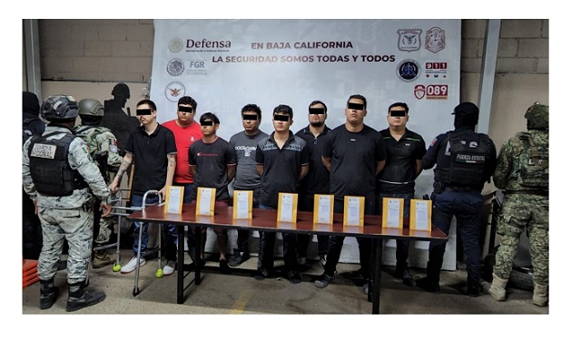 MEXICALI.- 26 de junio de 2025.- Agentes de la Fuerza Estatal de Seguridad Ciudadana en coordinación con elementos de la Secretaría de la Defensa Nacional (DEFENSA) y de la Guardia Nacional (GN), tras desplegar un operativo en las inmediaciones del fraccionamiento San Sebastián, en la ciudad de Mexicali, detuvieron a ocho presuntos delincuentes, asegurándoseles envoltorios con metanfetamina; en relación con el incidente, la Fiscalía General del Estado (FGE) cumplimentó una Orden Técnica de Investigación, donde se recolectaron algunos indicios, los cuales serán debidamente informados por dicha autoridad.