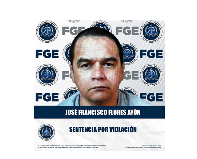 MEXICALI, BAJA CALIFORNIA, A 29 DE JUNIO DE 2025.- La Fiscalía General del Estado de Baja California (FGE), a través de la Fiscalía Especializada en Delitos Contra Mujeres por Razón de Género, obtuvo una sentencia condenatoria de 10 años de prisión en contra de José Francisco Flores Ayón, por el delito de violación.