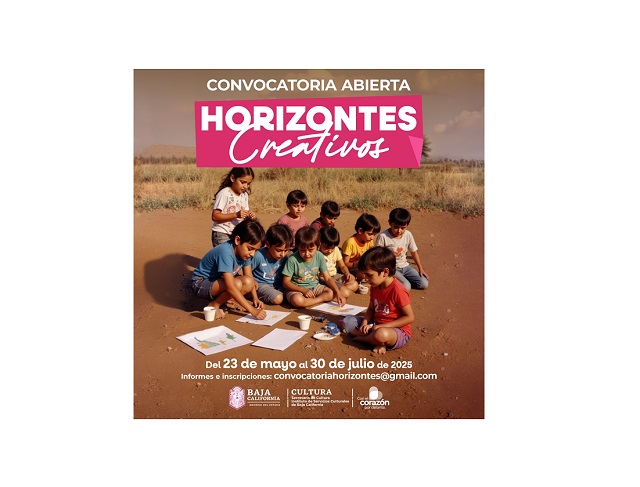 MEXICALI. – 30 de junio de 2025.- Con el objetivo de fortalecer el acceso a la cultura desde una perspectiva comunitaria, la Secretaría de Cultura de Baja California que encabeza Alma Delia Ábrego Ceballos, informa que se amplía hasta el 30 de julio la convocatoria Horizontes Creativos.