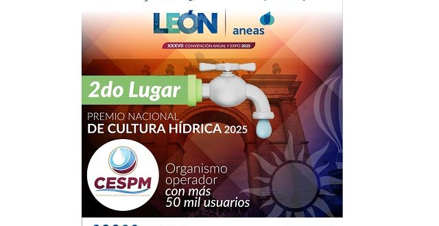 Mexicali.- 30 de septiembre de 2025.- La Comisión Estatal de Servicios Públicos de Mexicali (CESPM) obtuvo el segundo lugar en el Premio Nacional de Cultura Hídrica 2025, organizado por la Asociación Nacional de Entidades de Agua y Saneamiento (ANEAS), en el marco de su labor para fortalecer la gestión del agua en México.