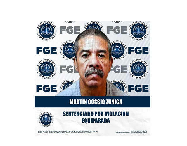 MEXICALI, BAJA CALIFORNIA, A 11 DE OCTUBRE DE 2025.- La Fiscalía General del Estado (FGE), a través de la Fiscalía Especializada en Delitos Contra Mujeres por Razón de Género, obtuvo una sentencia condenatoria de 8 años de prisión en contra de Martín Cossío Zúñiga, por el delito de violación equiparada en agravio de una menor.