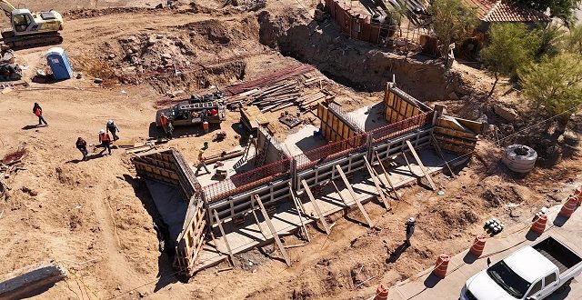 Mexicali. – 24 de octubre de 2025.-La Comisión Estatal de Servicios Públicos de Mexicali (CESPM) continúa con los trabajos de construcción de la estructura de compuertas para el desalojo de agua pluvial proveniente del arroyo Santa Catarina y la prevención de intrusión de agua de mar en la zona del Estero, en el puerto de San Felipe, Baja California.