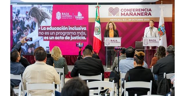 MEXICALI.- 28 de octubre de 2025.- Más que ser parte de un programa, la educación inclusiva en Baja California representa una visión de justicia social y bienestar, señaló la gobernadora Marina del Pilar Avila Olmeda en su conferencia matutina, donde fueron presentados los avances en ese rubro para beneficio de estudiantes de comunidades indígenas, con discapacidades, hijas e hijos de jornaleros agrícolas, además de personas en condición de migración.