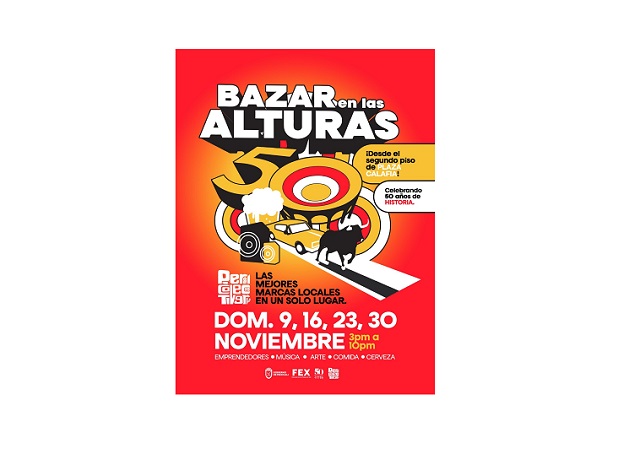 El evento, denominado “Bazar en las Alturas”, se realizará los días 9, 16, 23 y 30 de noviembre, ofreciendo a los visitantes una amplia variedad de propuestas locales. Entre las atracciones se incluyen espacios para emprendimientos del colectivo Pericolectiver, cerveza artesanal, zonas instagrameables (para fotografías del recuerdo), música en vivo de distintos géneros y diversas sorpresas.