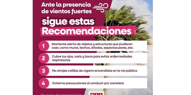 Ante esta condición meteorológica, la CEPC exhorta a usar cubrebocas, asegurar objetos en exteriores, alejarse de tendidos eléctricos, reducir la velocidad al manejar, evitar encender o manipular fuego, así como mantenerse al pendiente de su entorno.