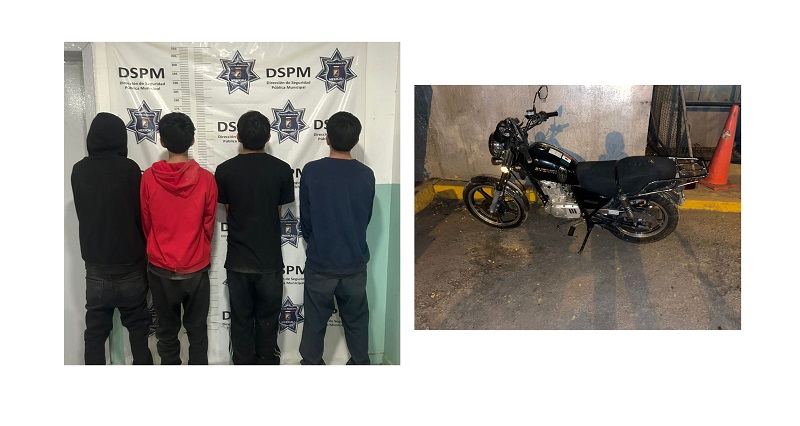 Mexicali, Baja California, a 04 de diciembre de 2025.- Como parte de los operativos preventivos que realizan diariamente las y los agentes de la Policía Municipal de Mexicali, cuatro menores de edad fueron detenidos, dos de ellos tras ser sorprendidos manipulando una motocicleta, presuntamente robada, y otros dos por intentar impedir la detención, en el fraccionamiento Valle de Puebla.