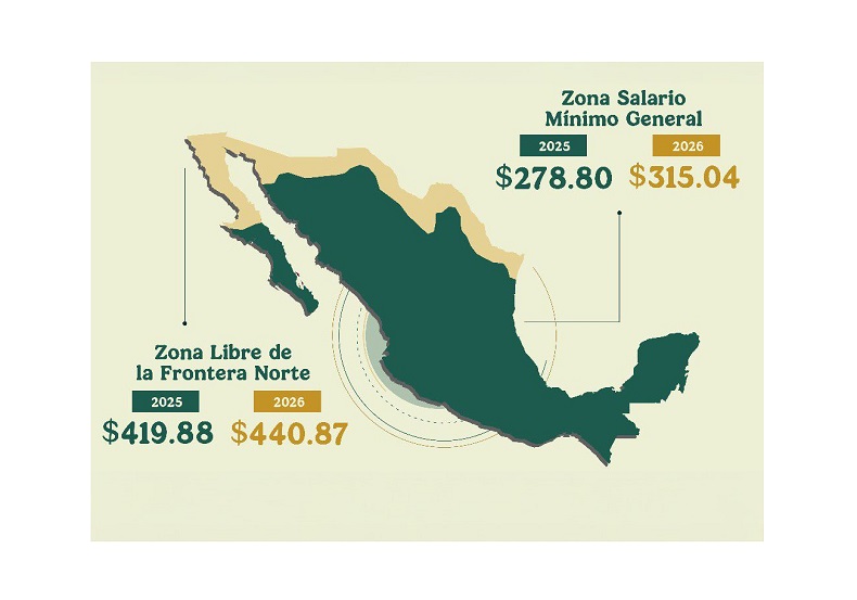 A partir del 1 de enero de 2026, el salario mínimo en la ZLFN pasará de 419.88 a 440.87 pesos diarios, lo que mantiene a la frontera norte como la región con la percepción mínima más alta del país. Del Villar subrayó que este incremento es especialmente relevante en estados como Baja California, donde el costo de vida es mayor y el salario mínimo funciona como una herramienta esencial para equilibrar las desigualdades históricas.