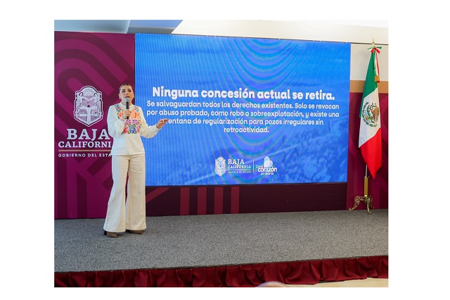 MEXICALI.- 09 de diciembre de 2025.- Los recursos hídricos son un bien que le pertenece al pueblo y es fundamental para la vida de las comunidades, tal como lo establece la Constitución Política de México, resaltó la gobernadora Marina del Pilar Avila Olmeda durante su Conferencia Matutina de esta semana, en relación con la reciente aprobación de la nueva Ley General de Aguas Nacionales.