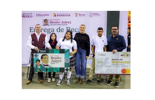 MEXICALI.- 16 de diciembre de 2025.- De manera que estudiantes de preparatoria puedan continuar sus estudios, la gobernadora Marina del Pilar Avila Olmeda encabezó la entrega de la Beca Universal para el Bienestar “Benito Juárez”, que beneficiará con apoyos económicos de 1,900 pesos bimestrales a 1,200 jóvenes de media superior.