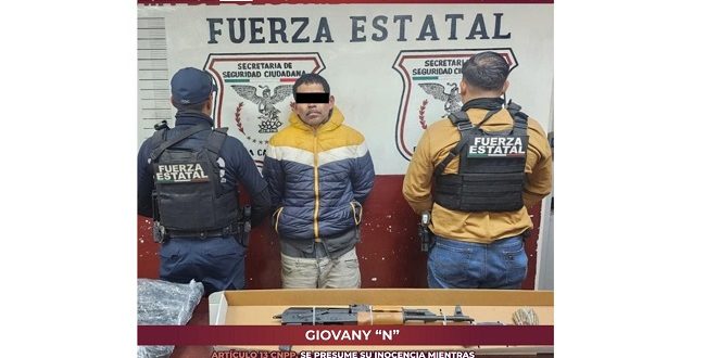 TECATE.- 22 de diciembre de 2025.- Un hombre apodado como “El Cholo” fue detenido tras ser sorprendido con un arma de fuego de alto calibre y varios cartuchos útiles, en una intervención llevada a cabo por agentes de la Fuerza Estatal de Seguridad Ciudadana (FESC). La acción se desarrolló en el poblado de La Rumorosa, perteneciente al municipio de Tecate, como parte de las labores de vigilancia que mantienen los elementos del proyecto “Proteo 4-25”.
