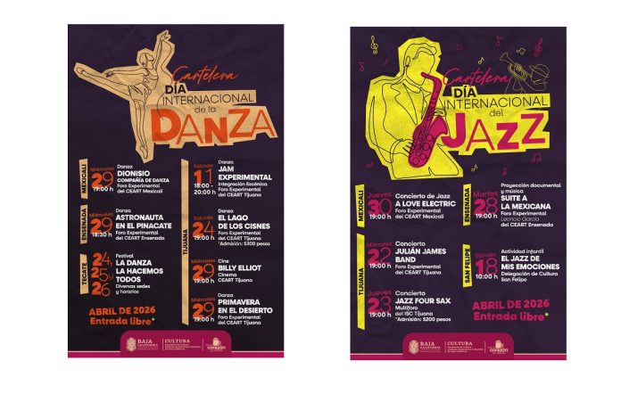 MEXICALI. – 13 de abril de 2026.- La Secretaría de Cultura de Baja California, encabezada por Alma Delia Abrego Ceballos, invita a la comunidad a celebrar el Día Internacional de la Danza (29 de abril) y el Día Internacional del Jazz (30 de abril), con una nutrida programación de actividades artísticas que se llevarán a cabo en diversos espacios culturales del estado.