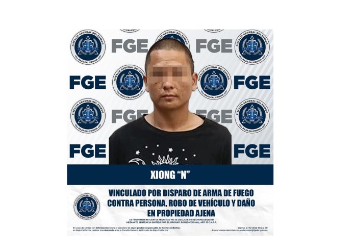 MEXICALI, BAJA CALIFORNIA A 17 DE ABRIL DE 2026.- La Fiscalía Regional de Mexicali, a través de la Unidad de Investigación de Delitos con Detenidos Oriente, logró que el Juez de Control dictara auto de vinculación a proceso en contra de Xiong “N”, tras presentar pruebas contundentes de su participación en diversos hechos delictivos registrados el pasado mes de marzo.