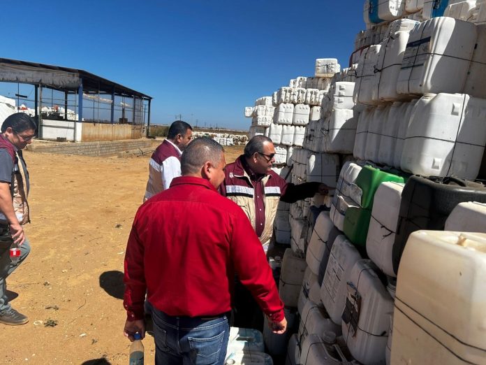SAN QUINTIN, B.C.- 21 de abril de 2026.- Para proteger a la población que trabaje en o cerca de los campos agrícolas de San Quintín, la Comisión Estatal para la Protección contra Riesgos Sanitarios de Baja California (COEPRIS BC), en coordinación con autoridades municipales y federales, participó en la jornada de recuperación de envases vacíos de plaguicidas.