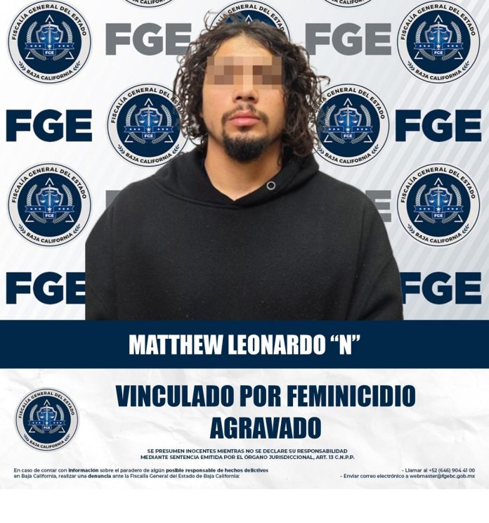 MEXICALI, BAJA CALIFORNIA, A 23 DE ABRIL DE 2026.– La Fiscalía General del Estado (FGE), mediante el trabajo de la Fiscalía Especializada en Delitos Contra la Vida, obtuvo la vinculación a proceso de Matthew Leonardo “N”, presunto responsable del feminicidio agravado de una mujer, quien fuera su madre.