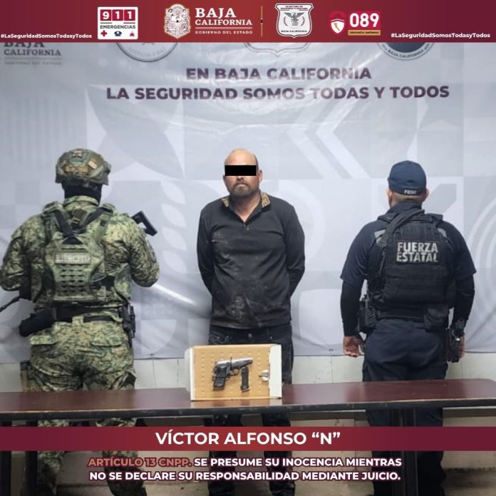 MEXICALI.- 27de abril de 2026.- La sinergia entre las instituciones Fuerza Estatal de Seguridad Ciudadana (FESC) y Secretaría de la Defensa Nacional (DEFENSA) fue determinante la tarde de este domingo, cuando lograron detener a un sujeto que circulaba armado a bordo de una motocicleta en las inmediaciones de la colonia Santa Isabel, en la capital del Estado.