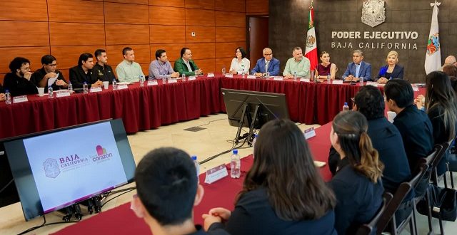 MEXICALI.- 20 de octubre de 2025.- Con el objetivo de fortalecer la seguridad, la movilidad y las condiciones de bienestar de la comunidad universitaria, la gobernadora Marina del Pilar Avila Olmeda encabezó un encuentro con integrantes del Consejo Estatal de la Sociedad de Alumnos de la Universidad Autónoma de Baja California (UABC), donde escuchó sus planteamientos y propuestas para mejorar el entorno académico y social en los distintos campus del estado.
