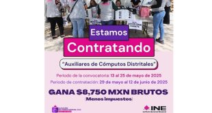 Por INE BC MEXICALI.- 22 de mayo de 2025.- El Instituto Nacional Electoral en Baja California (INE BC) hace una atenta invitación a la ciudadanía que desee participar como Auxiliar de Cómputo Distrital, durante el Proceso Electoral Extraordinario para la elección de diversos cargos del Poder Judicial de la Federación 2024-2025. Este puesto es para desempeñar actividades de apoyo con los nueve Consejos …